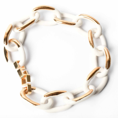 Au fur et à mesure, Leila introduit la porcelaine dans son processus de recherche qui va devenir l’un des composants principaux de ses bijoux.
